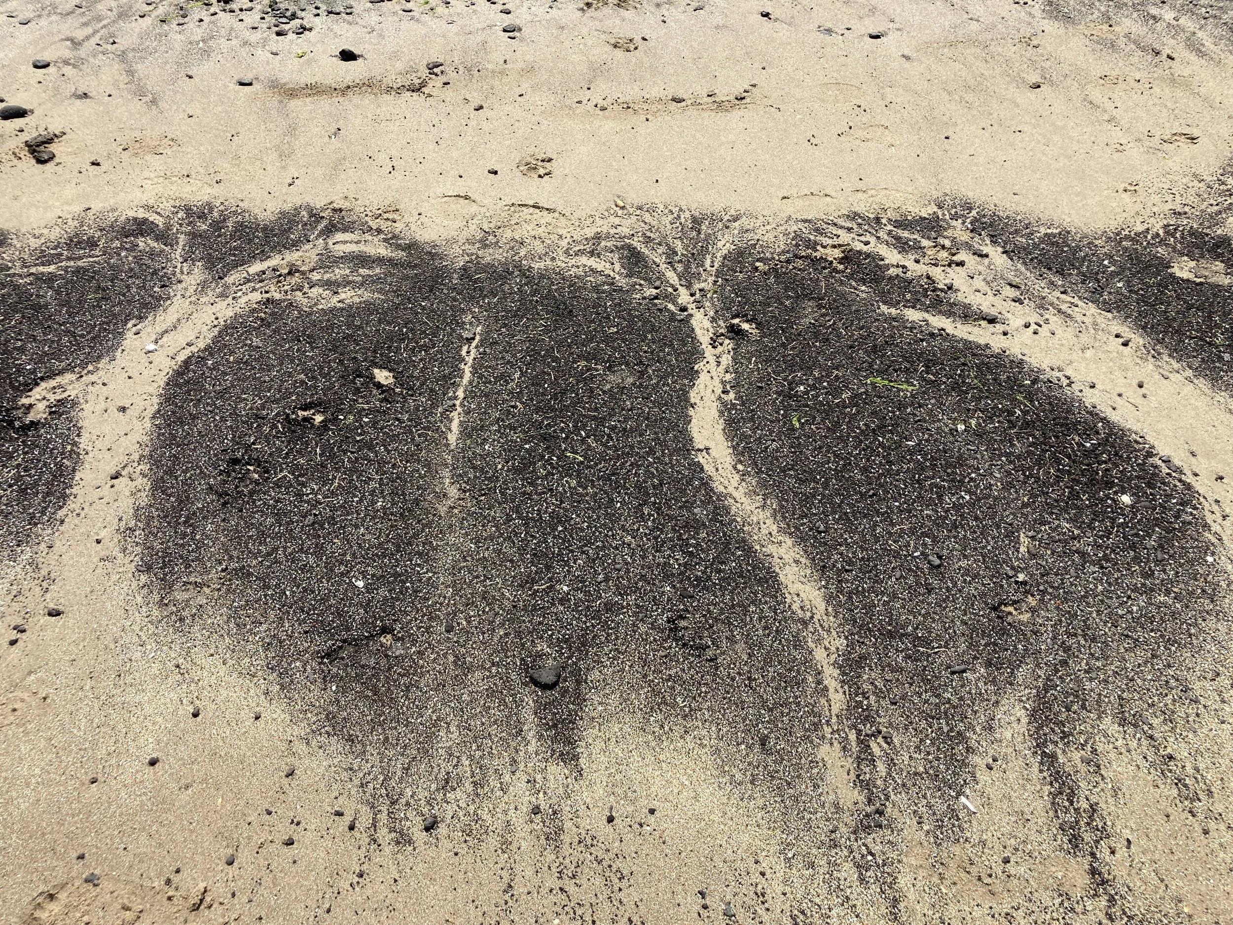 Tijdens weer een nieuwe lockdown verplaatste ik, op zoek naar berglandschap in Nederland, mijn werkterrein naar het strand tussen Katwijk en Scheveningen. Ik werd getroffen door de vormentaal van bergen en dalen de zich herhaalt als fractals in de afdrukken van zeewater in het zand. Een grafisch spel van minuscule kammen en dalen, waterstromen en lawines. Grootse krachten van water dat kolkt, afbrokkelt, meevoert in typisch Nederlands miniatuur. Tekeningen die ik ter plaatse maak.